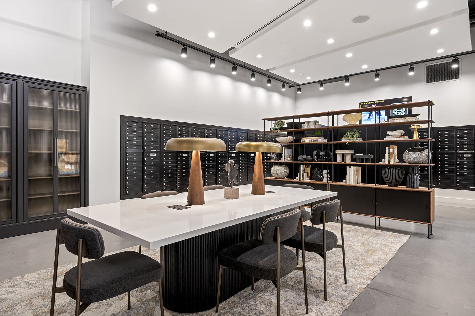 Our modern mailroom and lobby welcomes you home