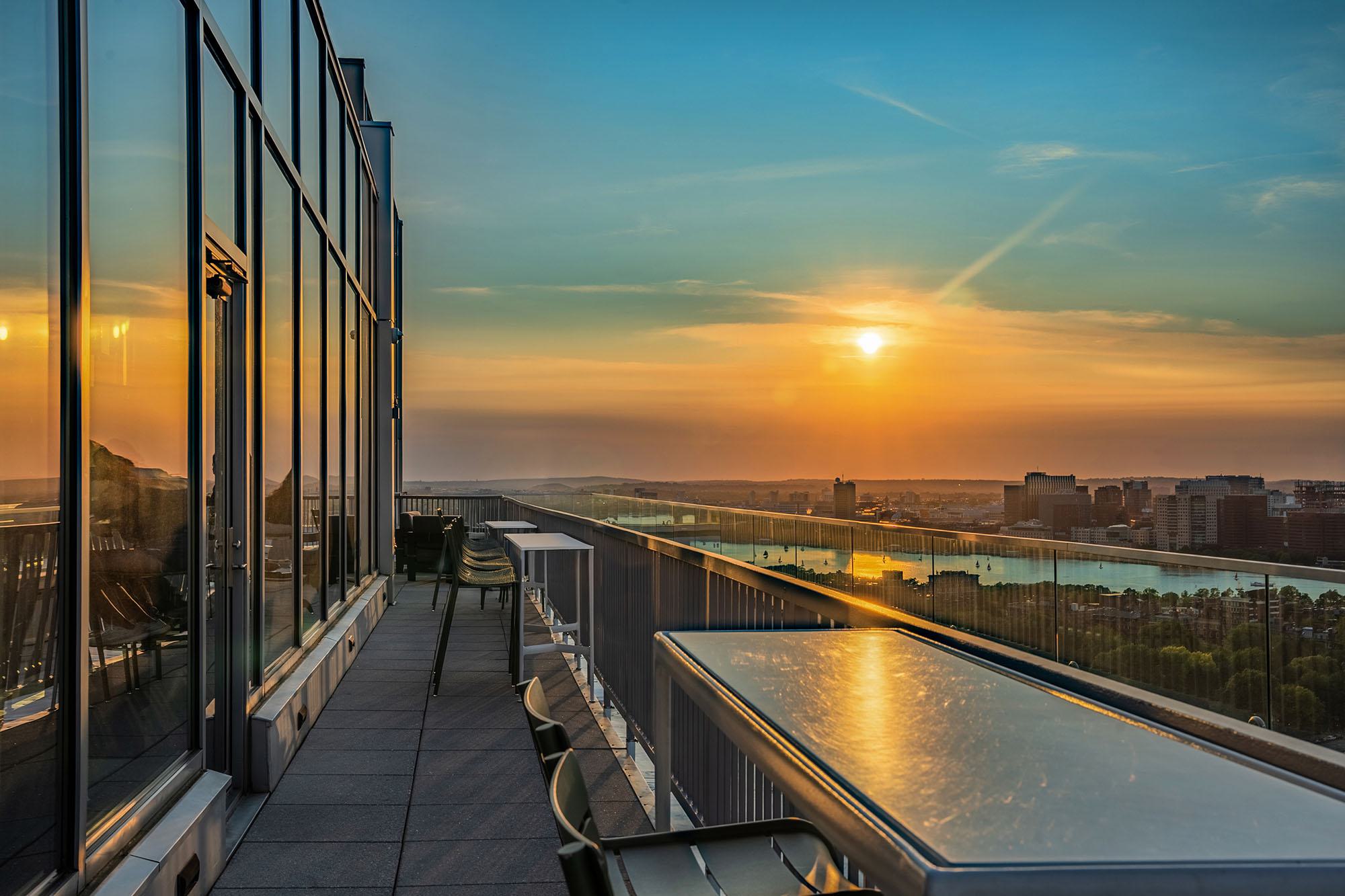 Rooftop views where downtown city lights meet the Charles River