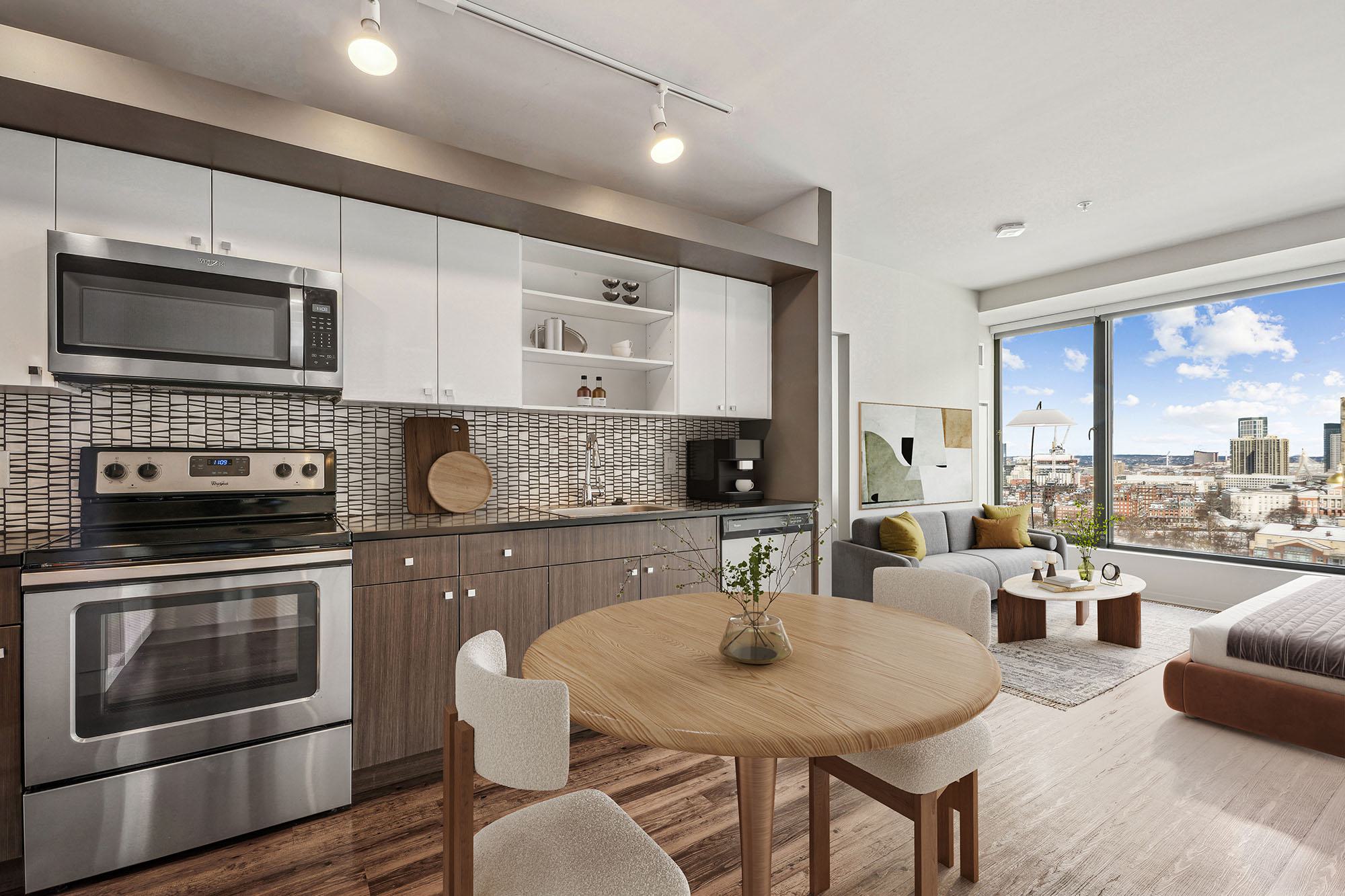 A luxury studio that lives large—with room to cook, dine, and unwind